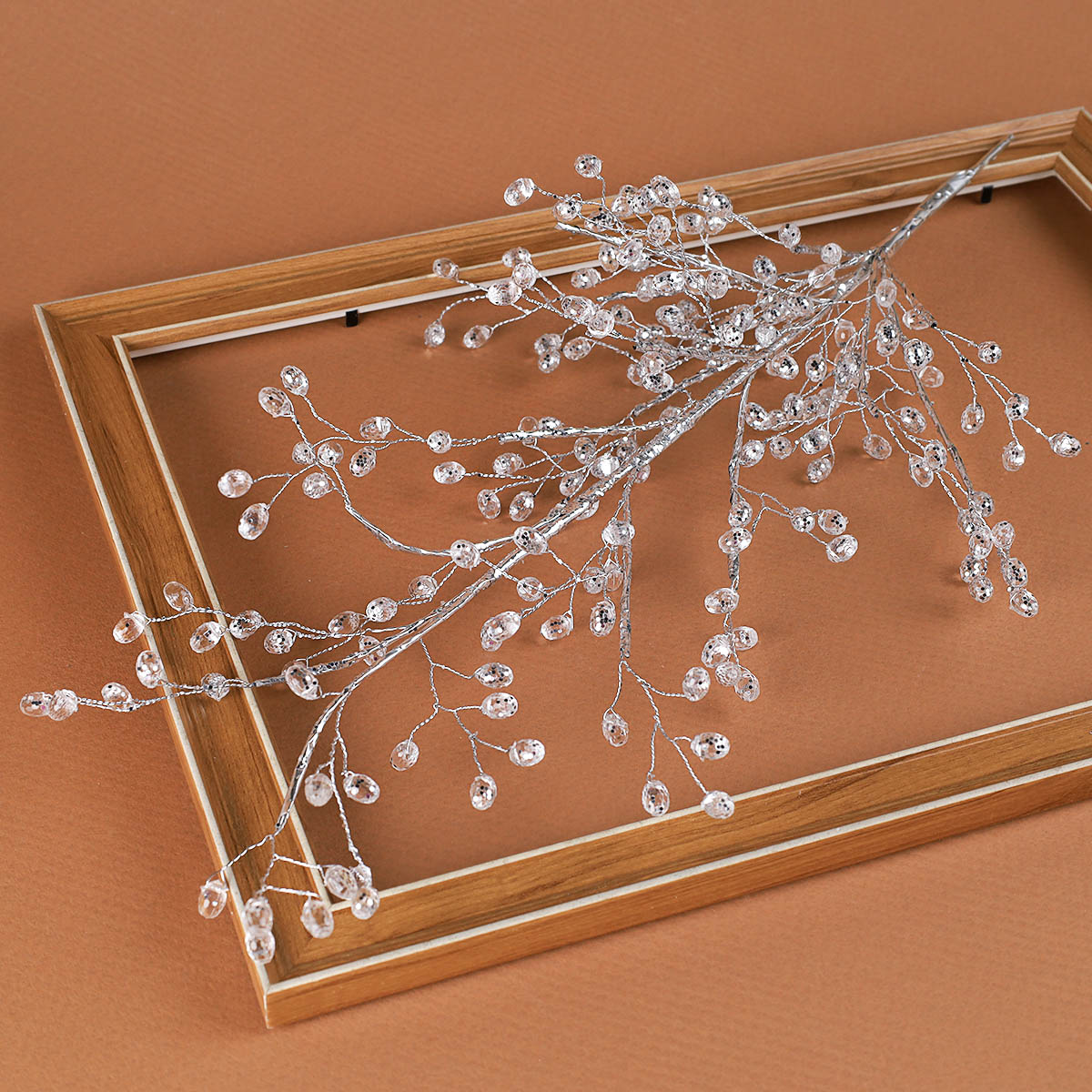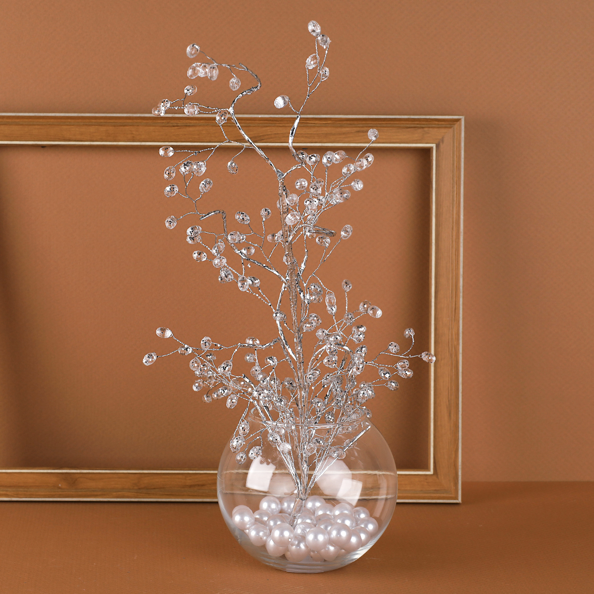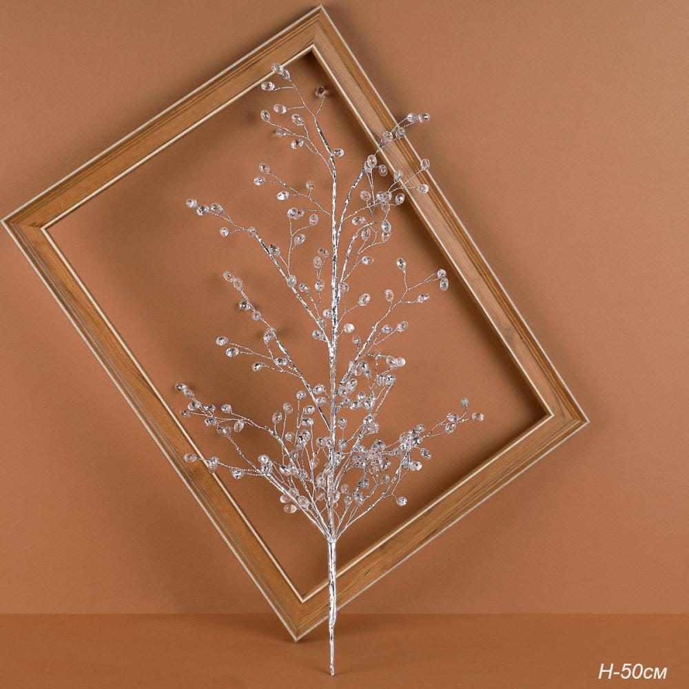 Ветка декоративная стеклярус 50 см / SA20227-A2 /уп 50/200/серебро*