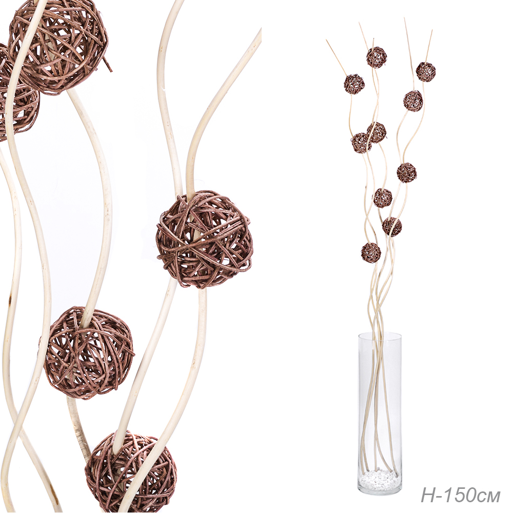 Сухоцвет набор 5 штук 150 см (китте 6 см.10 шт) / 0410-4 /уп 80/ коричневые шары на белом