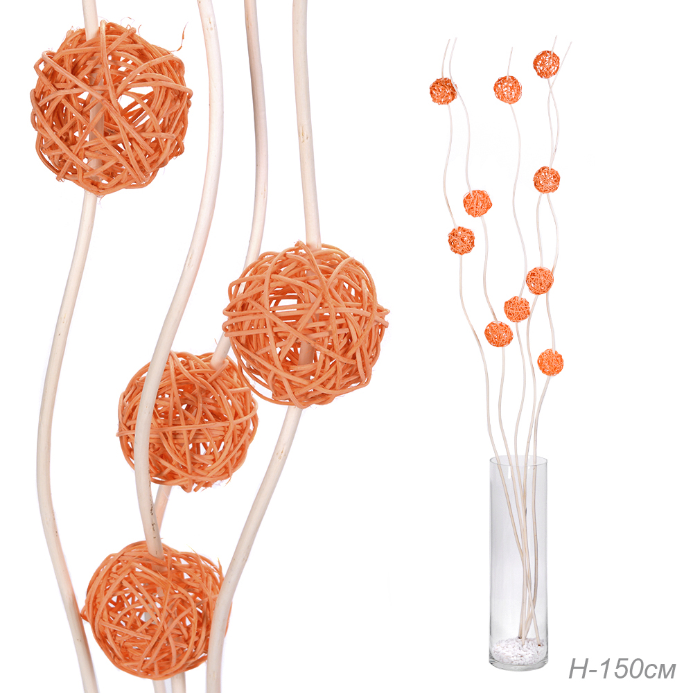 Сухоцвет набор 5 штук 150 см (китте 6 см.10 шт) / 0410-4 /уп 80/ оранжевые шары на белом
