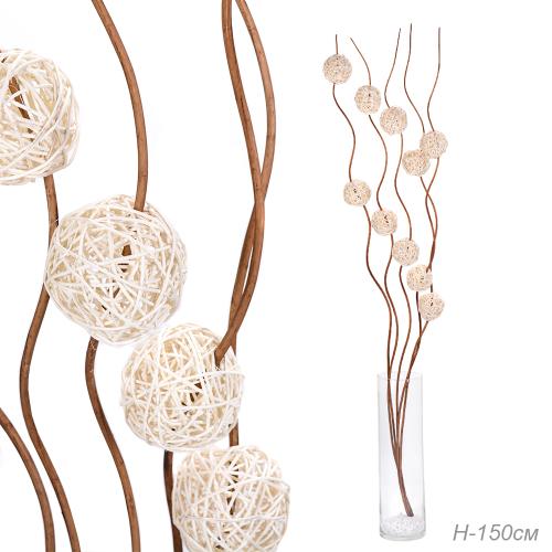 Сухоцвет набор 5 штук 150 см (китте 8 см.10 шт) / 0410-8 /уп 60/* белые шары на коричневом