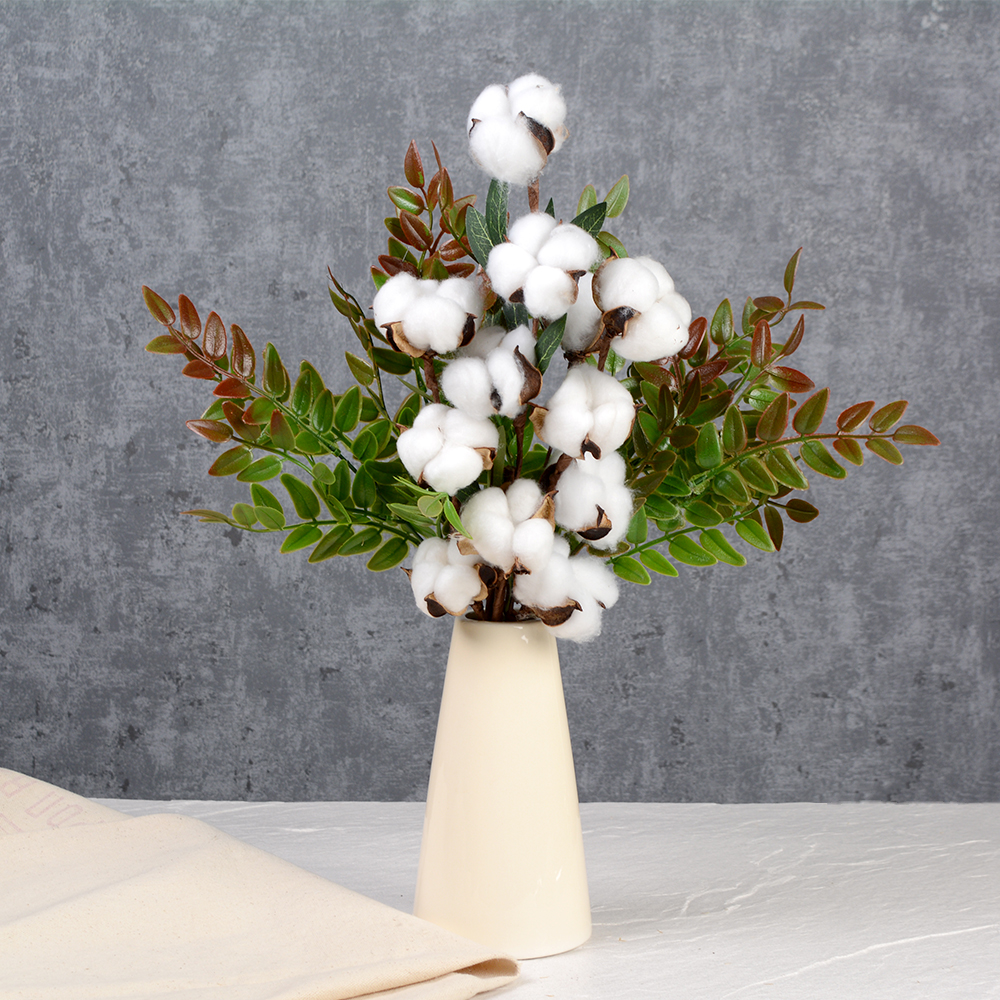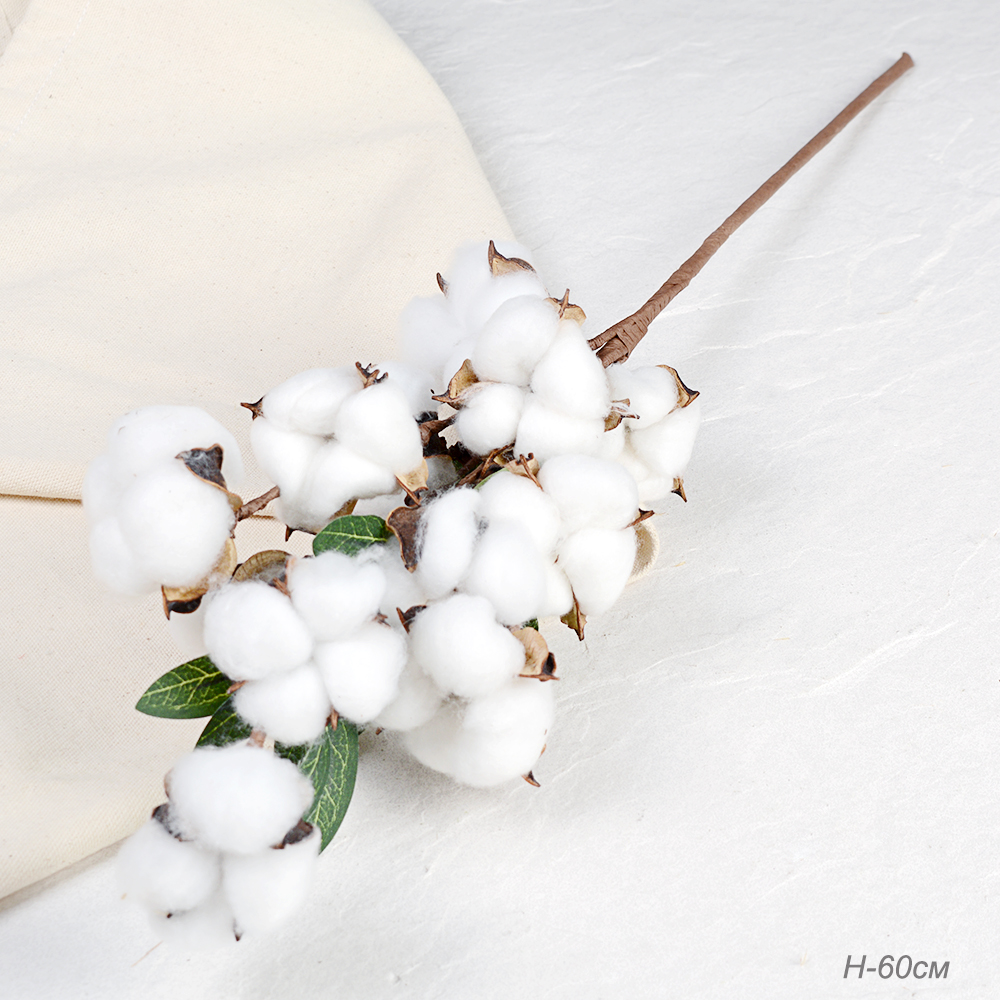 Ветка декоративная хлопок 9 коробочек на 3 веточках 60 см / YX-103 /уп 200/А