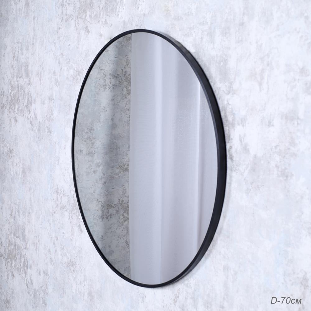 Зеркало круглое в алюминиевой раме настенное 700х700 black / HLQW-AM019001 /уп 1/Небьющееся зеркало