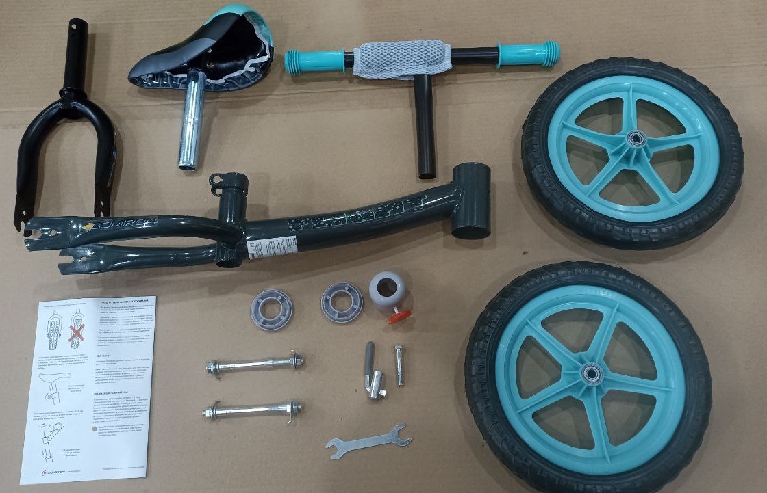 - Седло: Детское велосипедное седло для комфортного позиционирования и учения балансу.