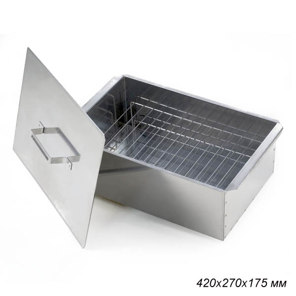 Коптильня 2-х ярусная малая 420х270х175 мм /уп.1/ нерж. с поддоном для сбора жира К2-0,8НП