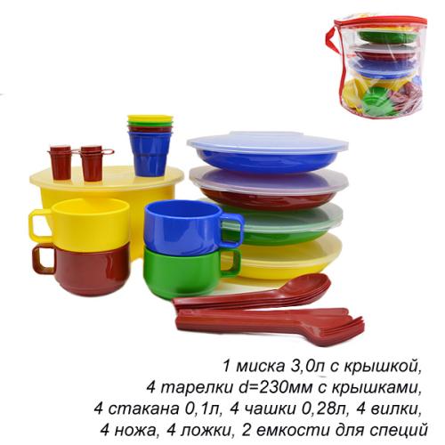 Набор дорожный на 4 персоны. Качественный пластик, удобное хранение.