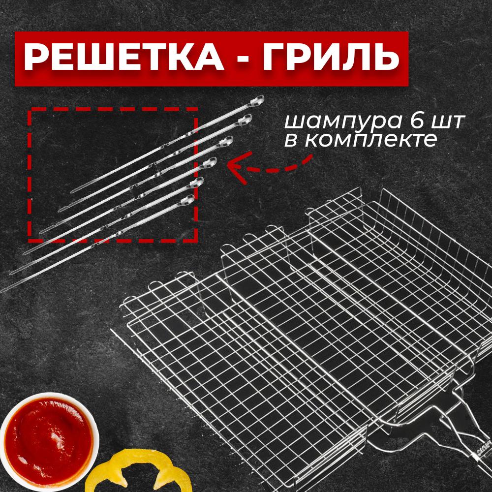 Набор для барбекю Решетка глубокая 33х25х60 см + Шампура 6 штук 60х0,7 см/нерж/ 5820 /уп 24/АКЦИЯ