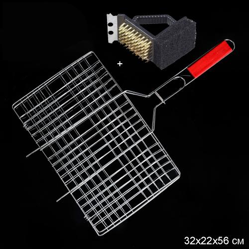 Набор для барбекю решетка плоская 35х22х56 см+ Щетка для чистки решетки ПРОМО АКЦИЯ / 659-89 /уп 30/