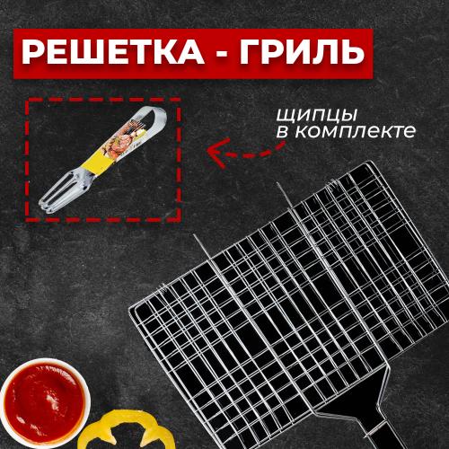 Набор для барбекю Решетка плоская 43х30х70 см + Щипцы 19,5 см/ 1095 /уп 25/АКЦИЯ