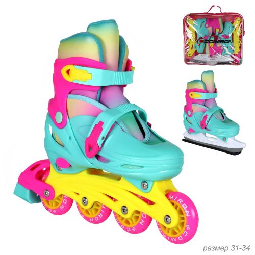 Коньки раздвижные ледовые раздвижные 2 в 1. (ролики+коньки) COMIRON / S /уп 6/ (31-34) цветные