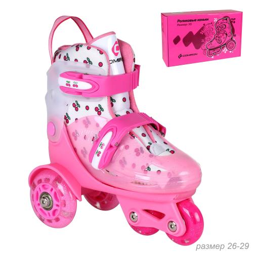 Роликовые коньки COMIRON / Nan03- XS /уп 5/ (26-29) розовые