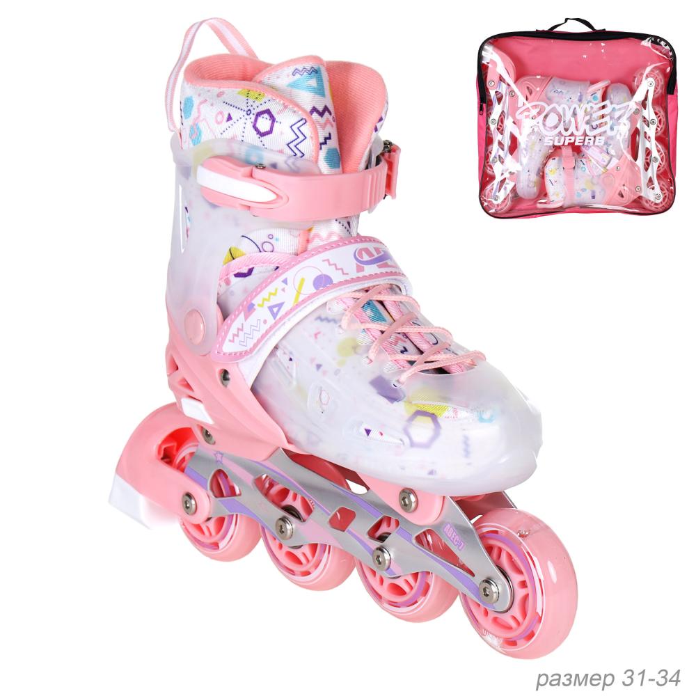 Роликовые коньки COMIRON прозрачный ботинок / 199-1 S /уп 6/ (31-34) розовые