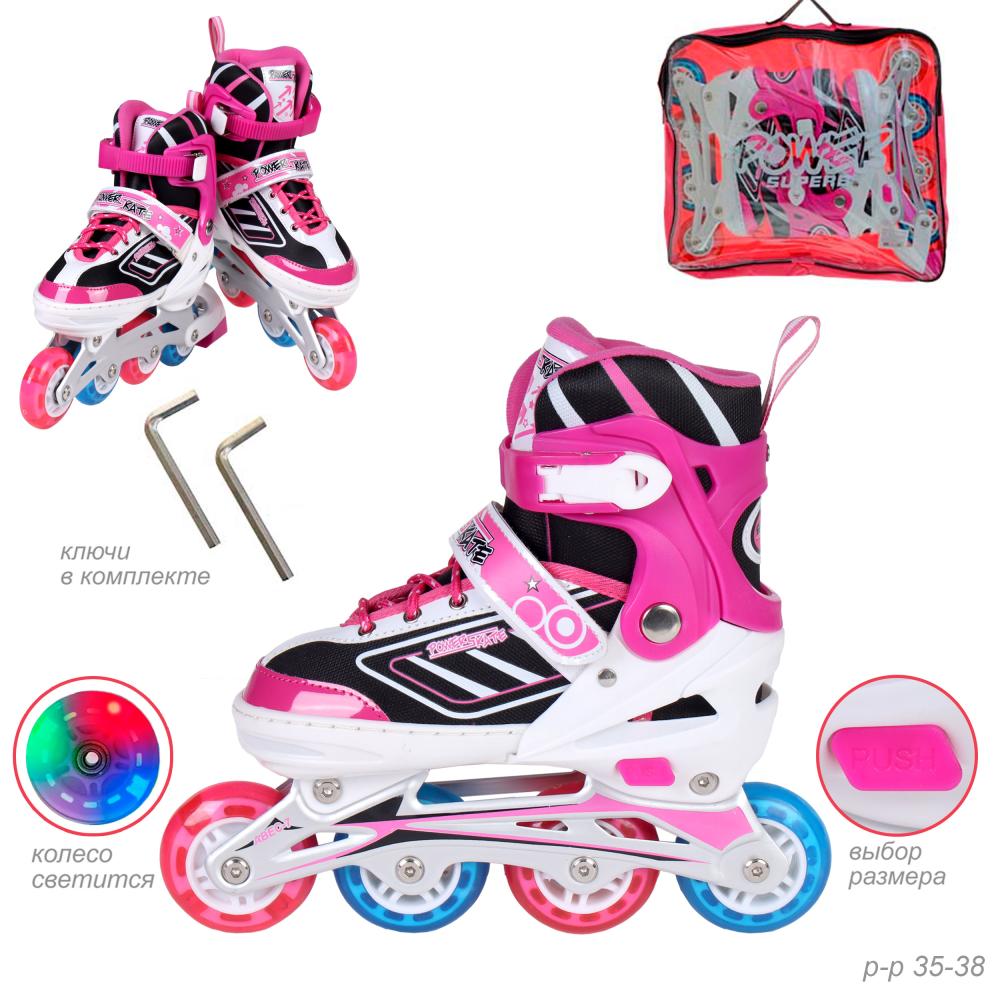 Роликовые коньки POWER / 5600 M /уп 6/ (35-38) розовые