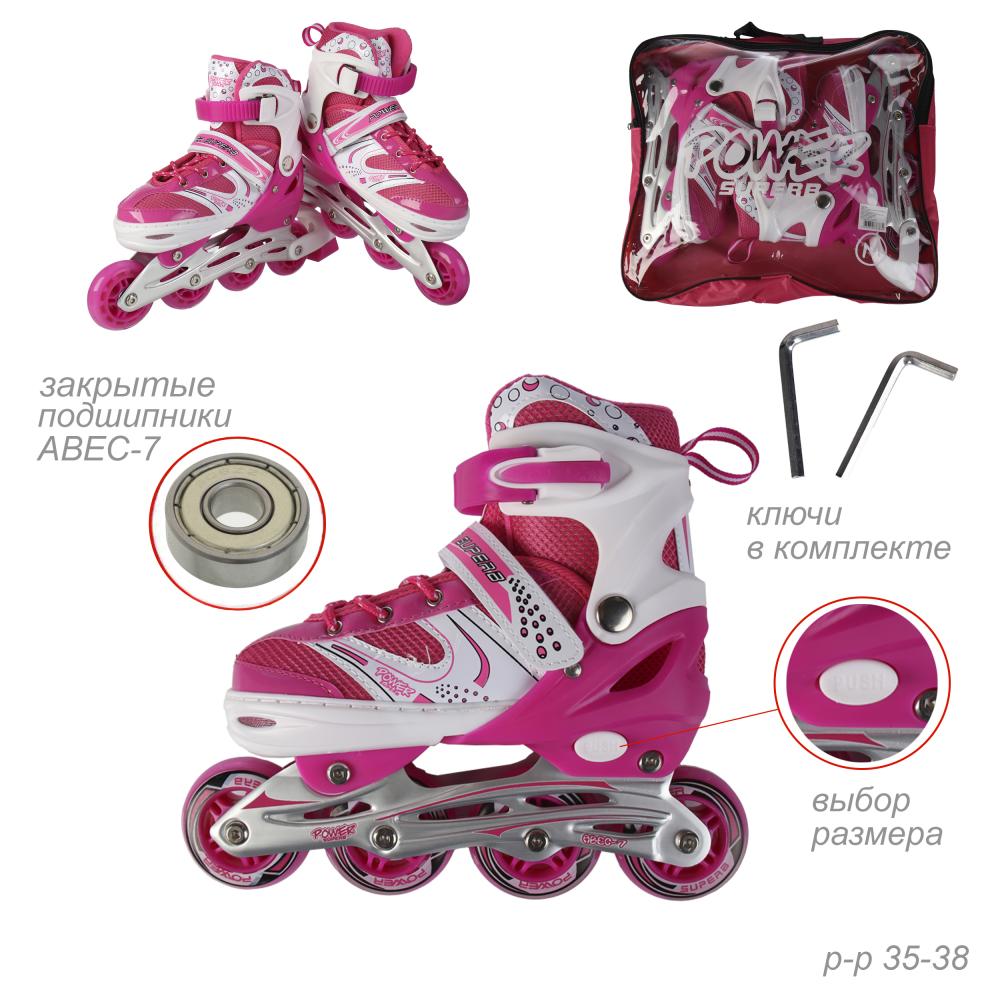 Роликовые коньки POWER / L6035М /уп 6/ (35-38) розовый