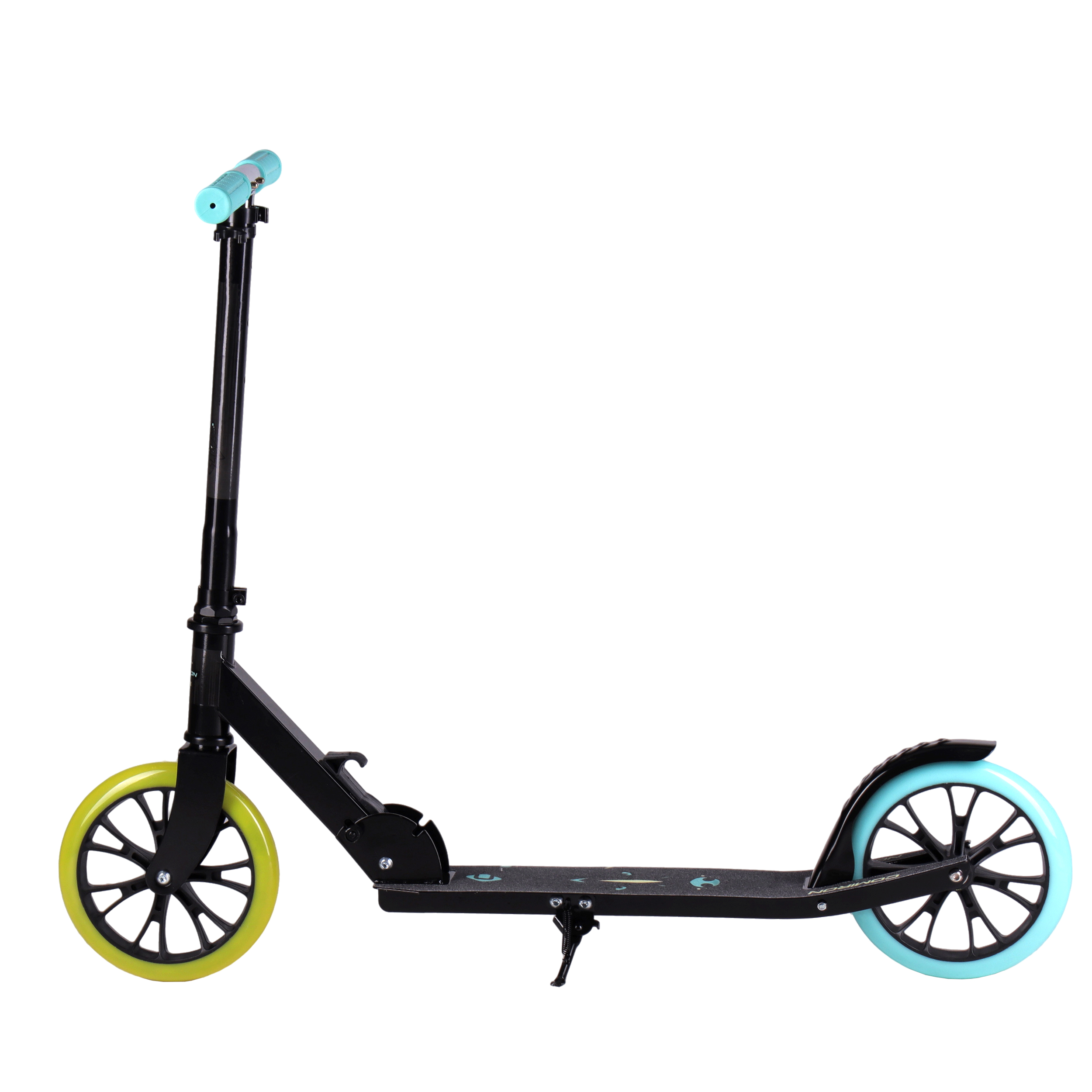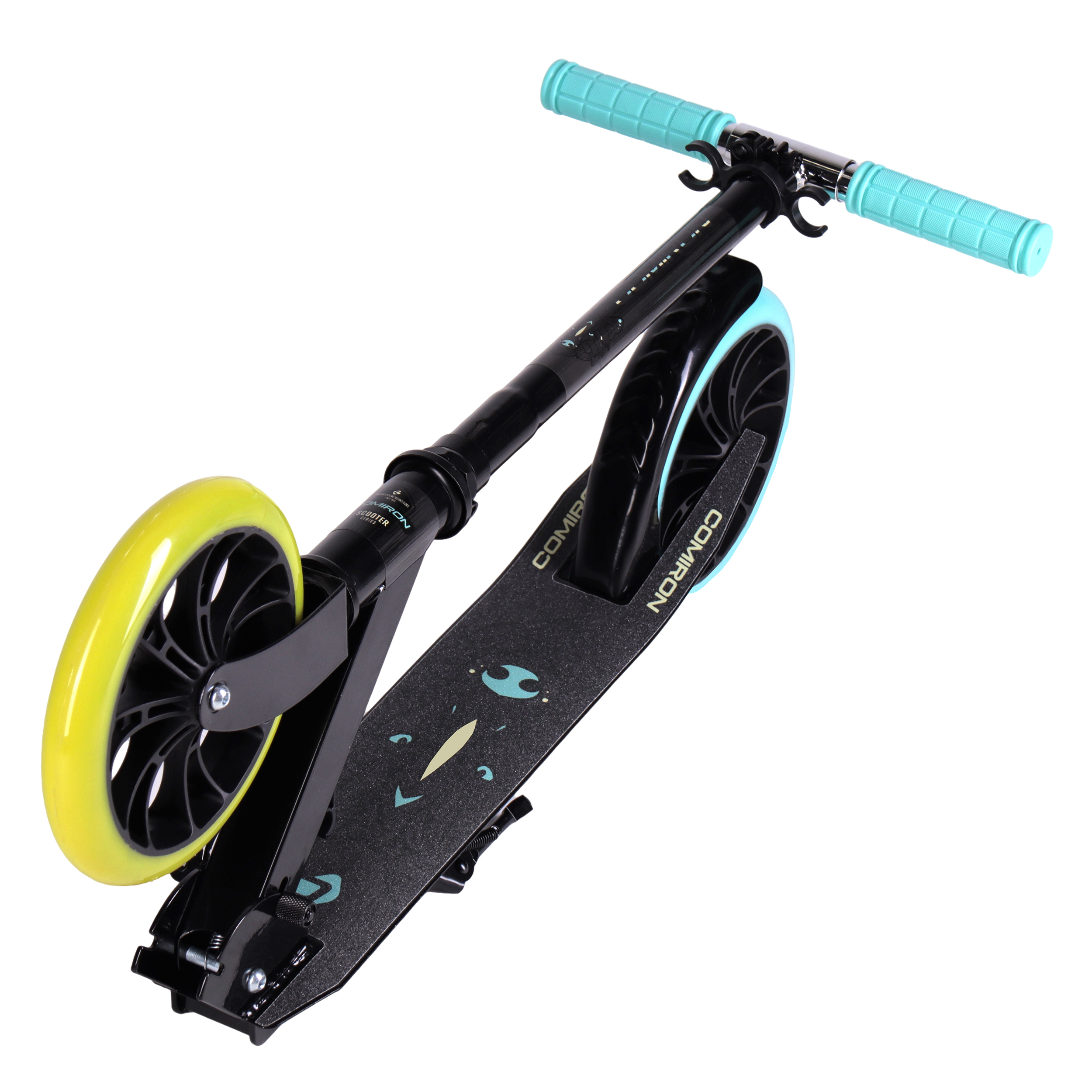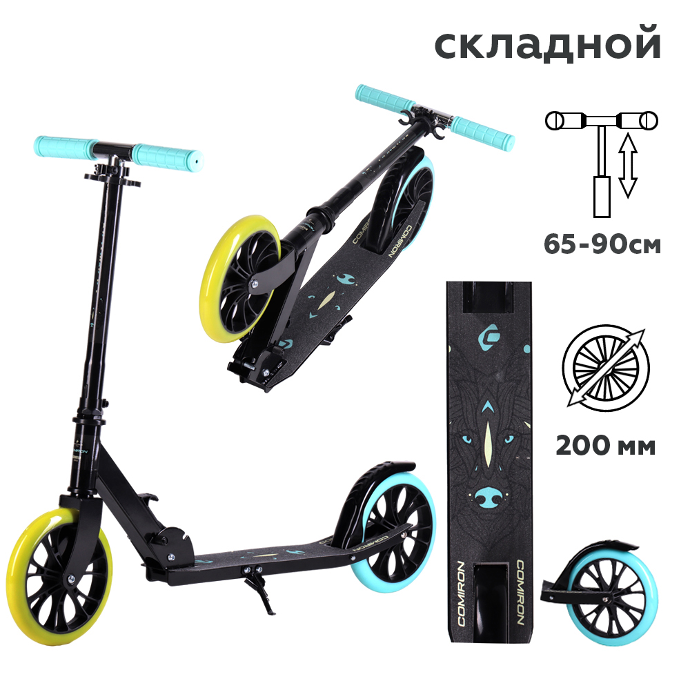 Самокат 2-х колесный городской COMIRON GT23 с колёсами 200 мм, увеличенной грузоподъёмностью до 80 кг, складной усиленной конструкцией, с подножкой, на улучшенных подшипниках в колёсах, в оригинальном дизайне от дизайнерского бюро COMIRON Sport