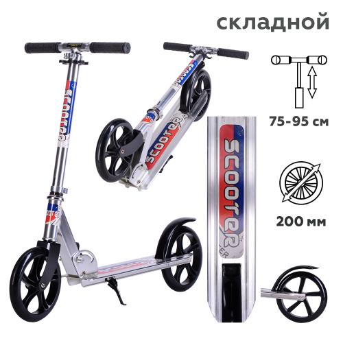 Двухколесный самокат SCOOTER складной с большими колесами 200 мм, подойдет для детей от 7 лет, а также для взрослых. Руль самоката легко регулируется по высоте и надёжно фиксируется.