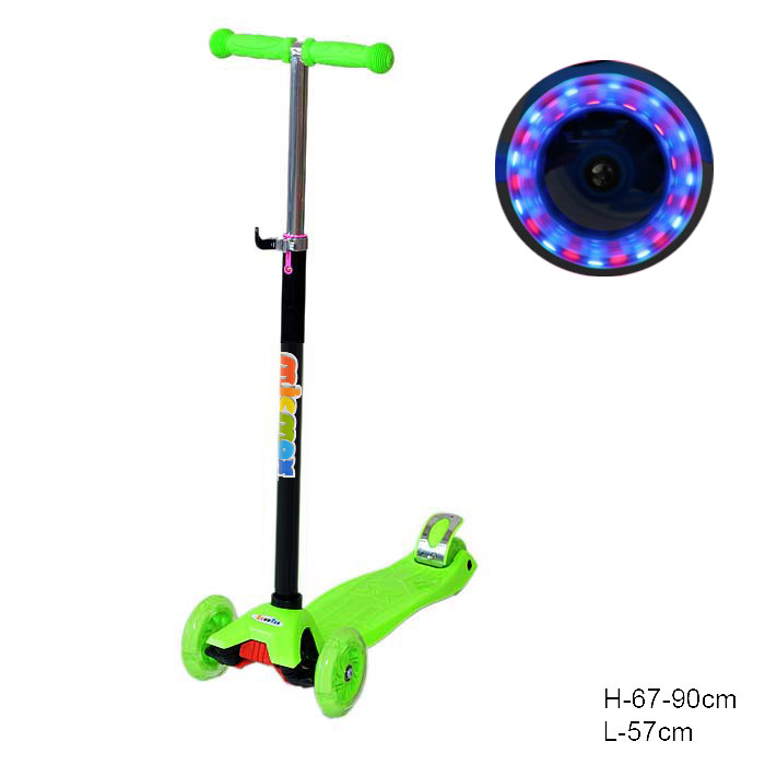 Самокат 3-х колесный JP-MG-03 зеленый WB /уп 10/ светятся колеса