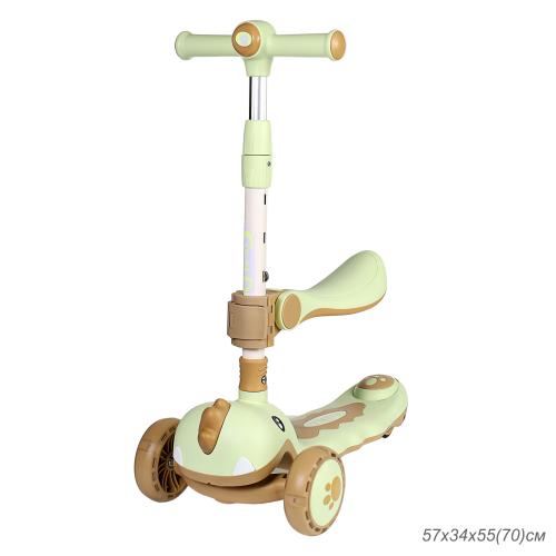 Необычный дизайн трехколесных самокатов - беговелов SCOOTER не оставит равнодушными ни детей, ни их родителей! - Возрастная группа: детский - Подойдет для детей от 3 лет. - Наличие компактного подъемного сиденья - Оснащен музыкой (4 музыкальных композиции) - Встроена подсветка (светомузыка) на деке - Максимальная нагрузка: 50 кг. - Диаметр колес: 120 и 80 мм. - Ширина колес: 40 и 45 мм. - Пром. подшипники: AВEC 7 - Усиленная рамой противоскользящая дека. - Высота руля от деки: 55 - 60 - 65 - 70 см. - Ширина ручки (руля): 28 см. - Платформа для ног (дека) антискользящая размером: 31,5х14 см. - Тормоз: ножной (step-on brake) - Без амортизаторов - Вес самоката - 2,800 кг. Тактильно приятный пластик и очень качественная, надёжная сборка самоката, удовлетворит запросы даже самых маленьких приверед. Самокат с Т-образной металлической телескопической ручкой с мягкими накладками, регулируемой по высоте и полиуретановыми колесами. Его колеса позволят преодолеть любые препятствия и труднопроходимые участки дороги. Такая модель трехколесного самоката идеально подойдет вашему ребенку для прогулок по городу: самокат устойчив, легко управляем благодаря большим колесам и достаточно быстро едет по ровным дорогам. Он имеет простую и надёжную конструкцию. Максимальная нагрузка на оси городского самоката - 50 кг.. Хранить его дома не составляет никакого труда, разборная ручка поможет вам в этом вопросе. Благодаря ей, самокат очень компактен во время перевозки или хранения!
