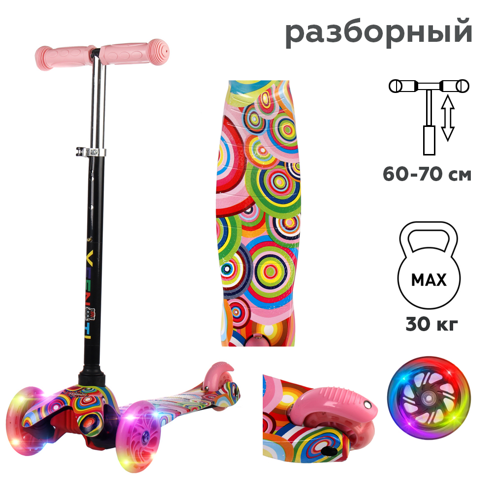 Самокат трехколесный для детей от 2-х лет Yeenot GT4105P35, нагрузка до 30кг, вес 1,8кг, светящиеся колёса PU 110мм, цвет Палитра БК/уп10