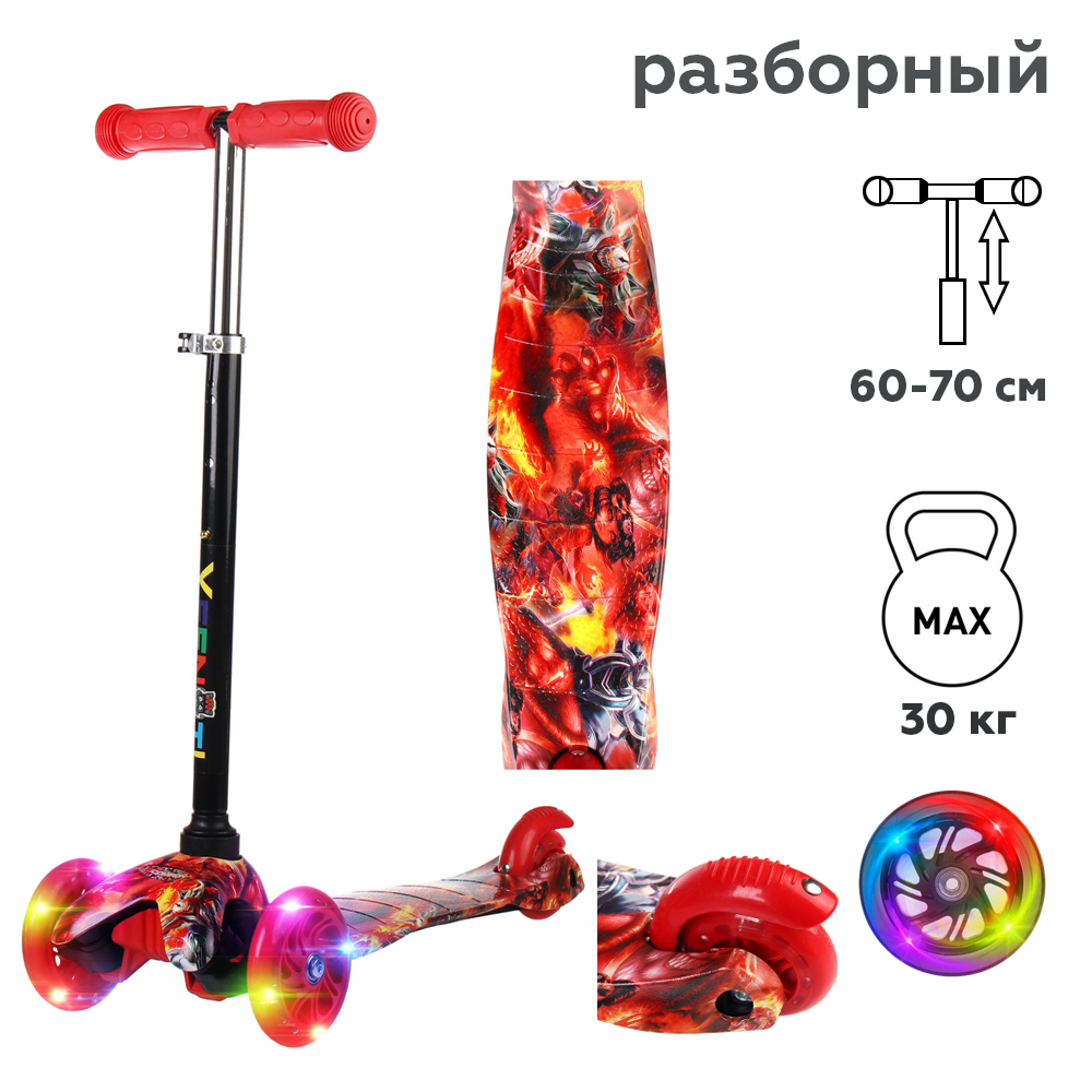 Самокат трехколесный для детей от 2-х лет Yeenot GT4105P46, нагрузка до 30кг, вес 1,8кг, светящиеся колёса PU 110мм, цвет Пламя БК/уп10
