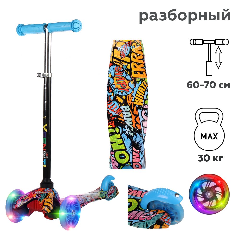 Самокат трехколесный для детей от 2-х лет Yeenot GT4105P48, нагрузка до 30кг, вес 1,8кг, светящиеся колёса PU 110мм, цвет граффити FRRR БК/уп10