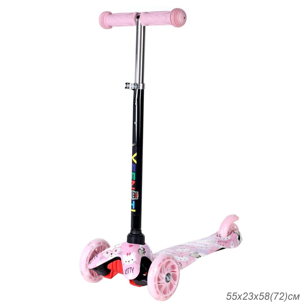 Самокат трехколесный для детей от 2-х лет Yeenot GT4105P52, нагрузка до 30кг, вес 1,8кг, светящиеся колёса PU 110мм, цвет розовый Котёнок БК/уп10