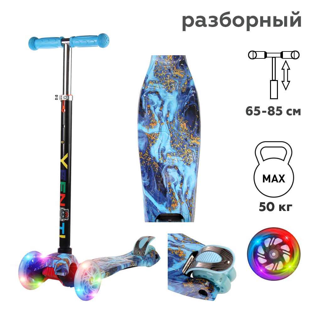 Самокат трехколесный для детей от 3-х лет Yeenot GT4108P38, нагрузка до 50кг, вес 2.3кг, светящиеся колёса PU116мм, цвет Подводный мир БК/уп10