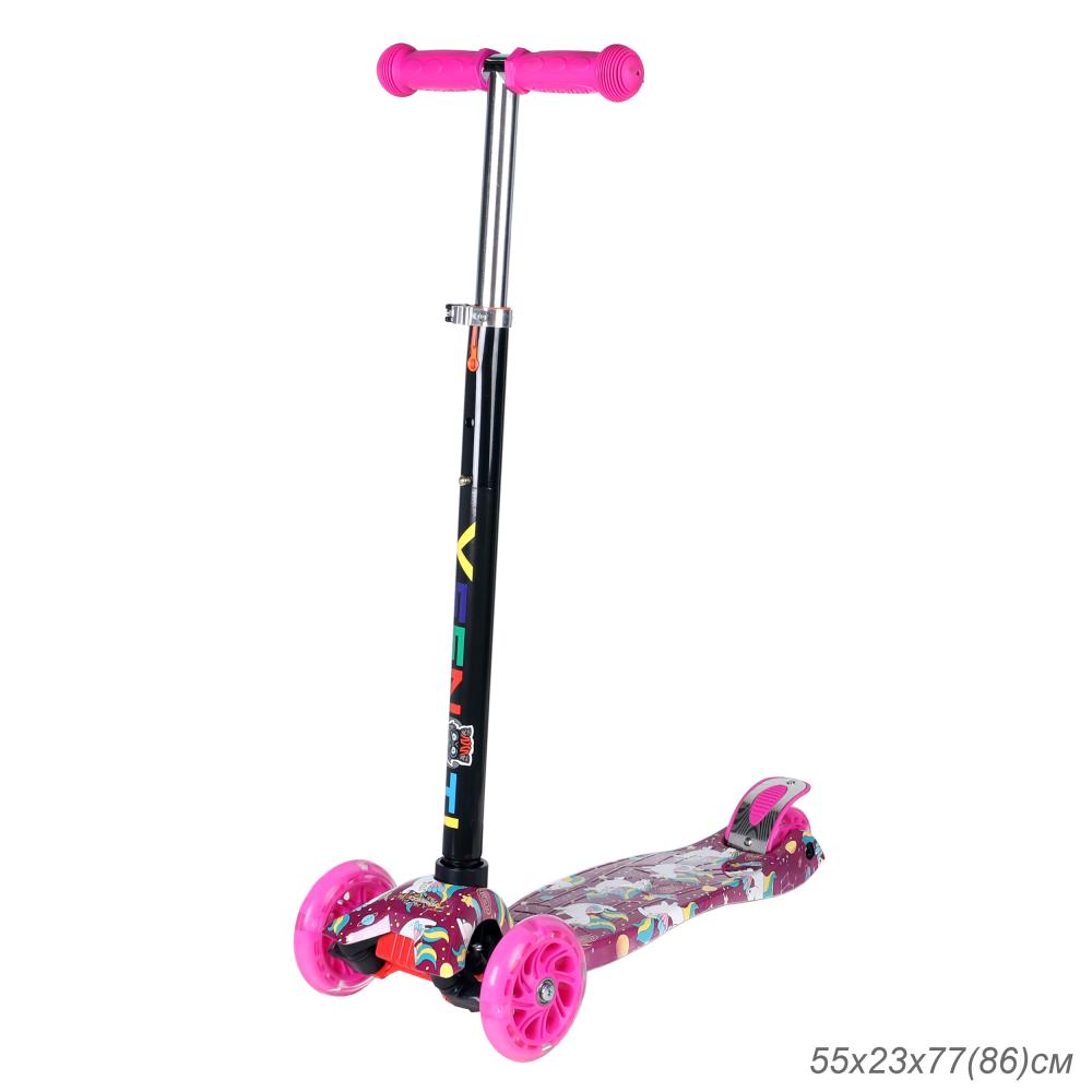 Самокат трехколесный для детей от 3-х лет Yeenot GT4108P55, нагрузка до 50кг, вес 2.3кг, светящиеся колёса PU116мм, цвет малиновый UNICORN БК/уп10
