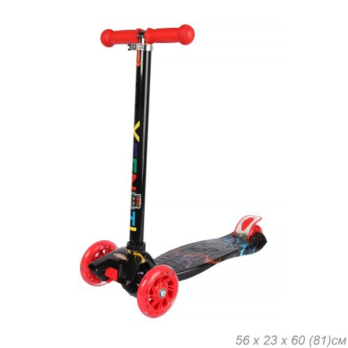 Самокат трехколесный для детей от 3-х лет Yeenot GT4108P57, нагрузка до 50кг, вес 2.3кг, светящиеся колёса PU116мм, цвет Молния ZOV БК/уп10