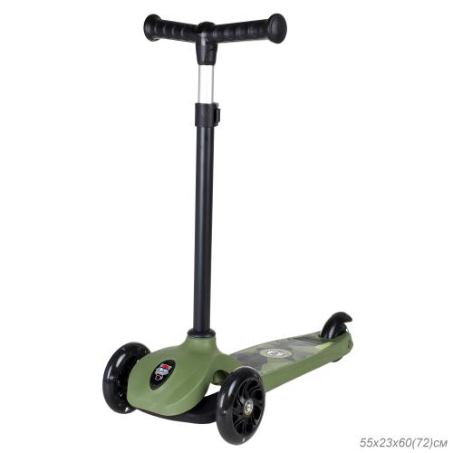 Самокат трехколесный облегчённый для детей от 2-х лет Yeenot GT2018-17, нагрузка до 30кг, вес 1,4кг, светящиеся колёса PU110мм, цвет Хакки БК/уп10
