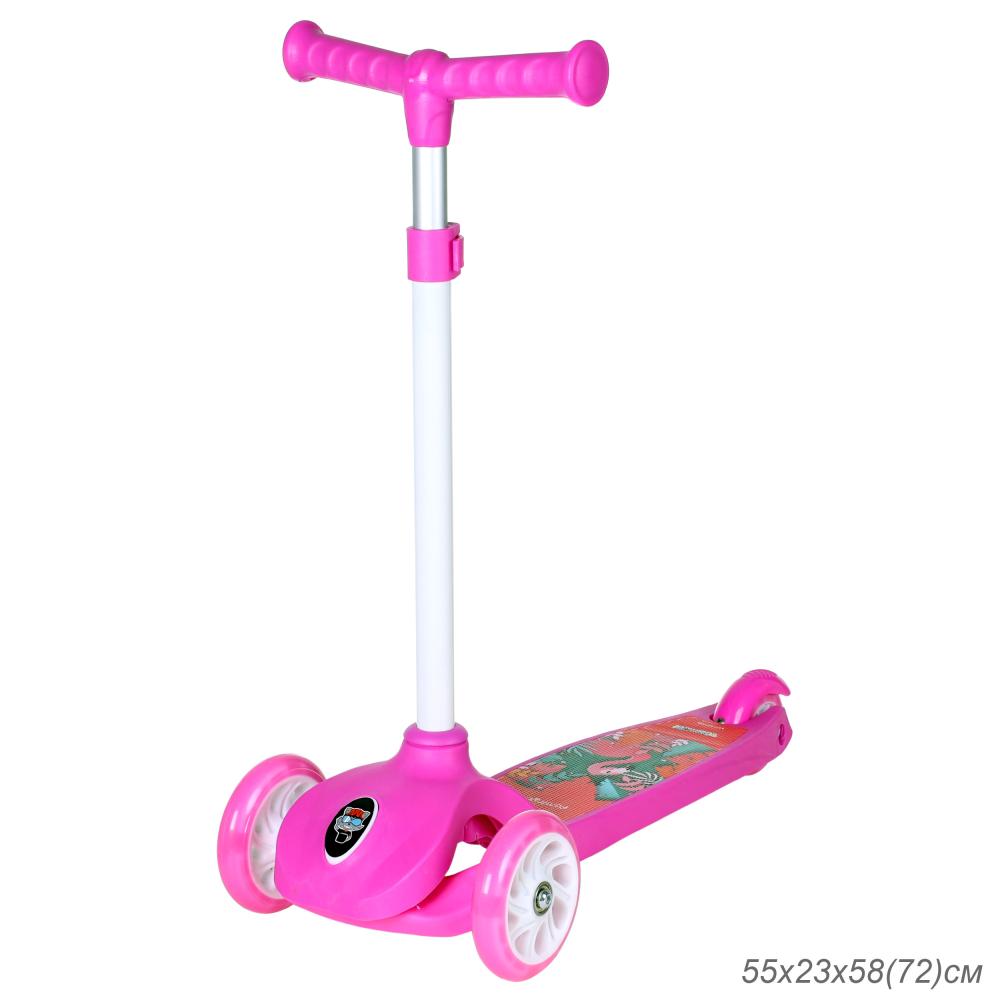 Самокат трехколесный облегчённый для детей от 2-х лет Yeenot GT2018-5, нагрузка до 30кг, вес 1,4кг, светящиеся колёса PU 110мм, цвет Фламинго БК/уп10