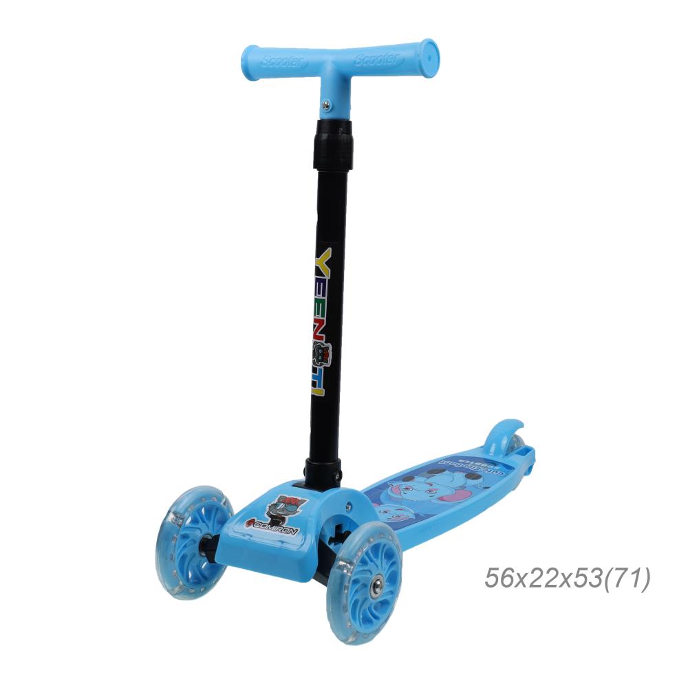 Самокат трехколесный облегчённый для детей от 3-х лет Yeenot GT105-3, нагрузка до 25кг, вес 1,2кг, светящиеся колёса 110мм, цвет синий Слоник БК/уп13