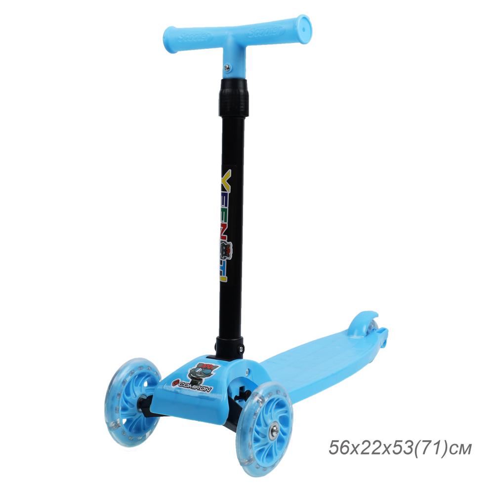 Самокат трехколесный облегчённый для детей от 3-х лет Yeenot GT105, нагрузка до25кг, вес 1,2кг, светящиеся колёса 110мм, цвет синий БК/уп13