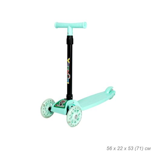 Самокат трехколесный облегчённый для детей от 3-х лет Yeenot GT105, нагрузка до25кг, вес 1,2кг, светящиеся колёса 110мм, цвет светло-зелёный БК/уп13
