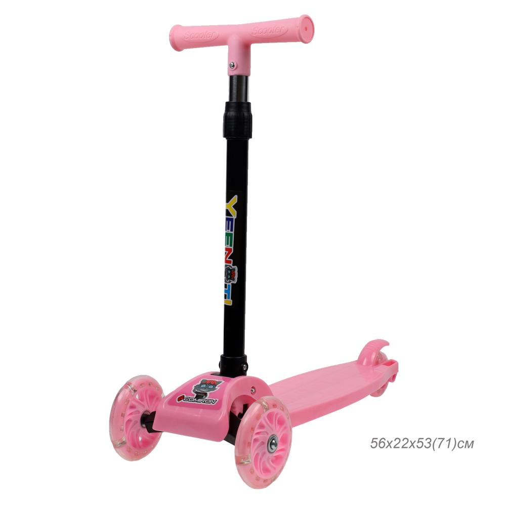 Самокат трехколесный облегчённый для детей от 3-х лет Yeenot GT105, нагрузка до25кг, вес 1,2кг, светящиеся колёса 110мм, цвет розовый БК/уп13