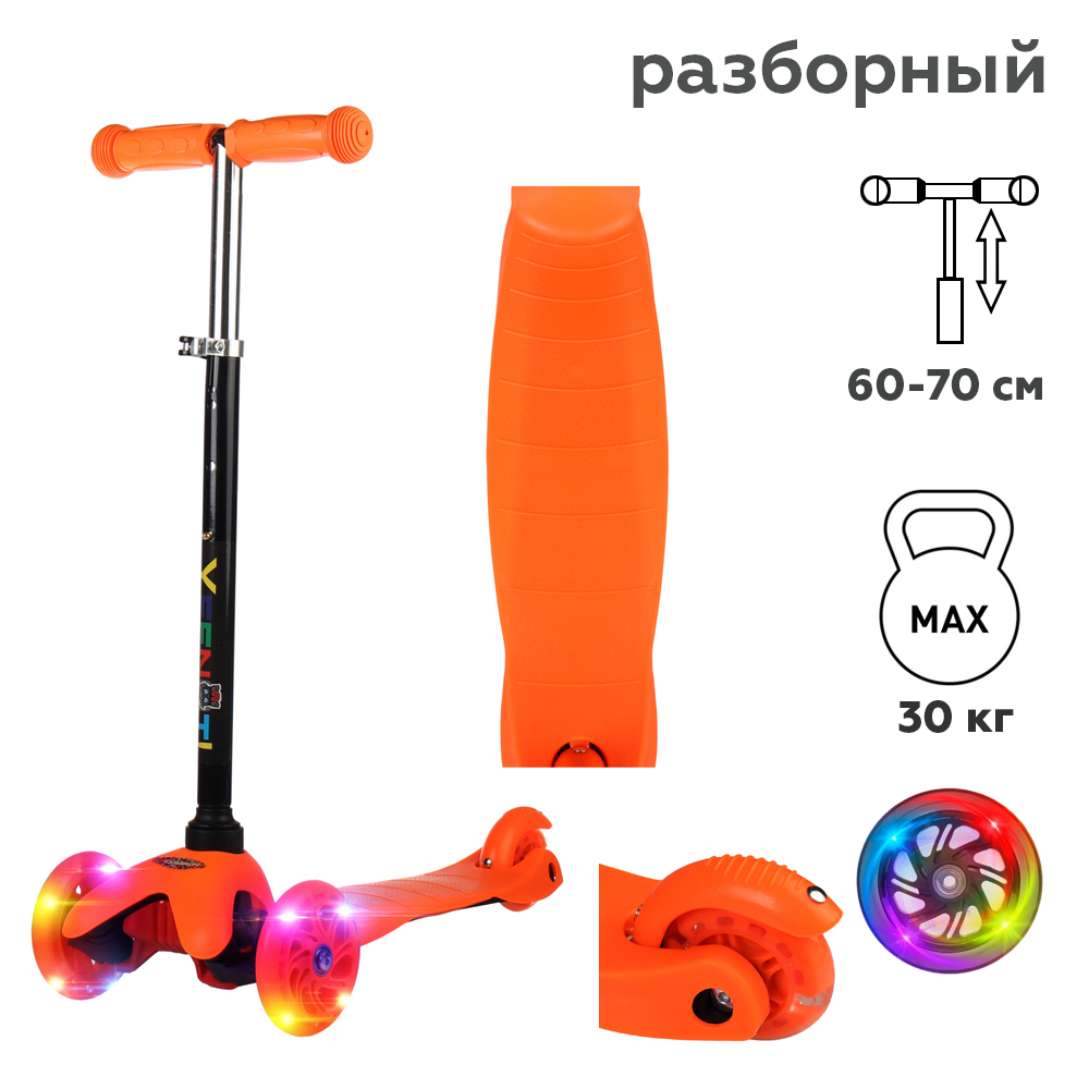 Самокат трехколесный от 2-х лет Yeenot Kids GT4105, до 30кг, вес 1.8кг, свет. колёса PU 110мм ABEC7, оранжевый, БК/уп10/ АКЦИЯ!