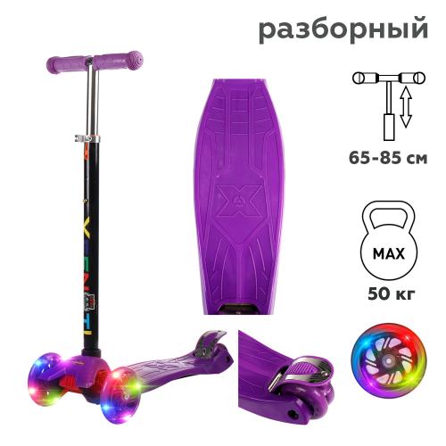 Самокат трехколесный от 3-х лет Yeenot Kids GT4108, до 50кг, вес 2.3кг, свет. колёса PU 116мм ABEC7, фиолетовый, БК/уп10/ АКЦИЯ!