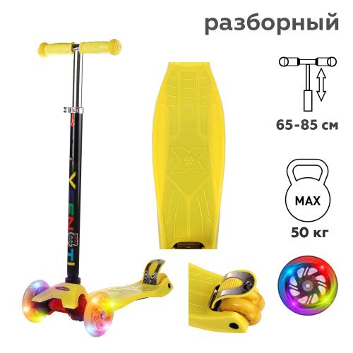 Самокат трехколесный от 3-х лет Yeenot Kids GT4108, до 50кг, вес 2.3кг, свет. колёса PU 116мм ABEC7, жёлтый, БК/уп10/ АКЦИЯ!