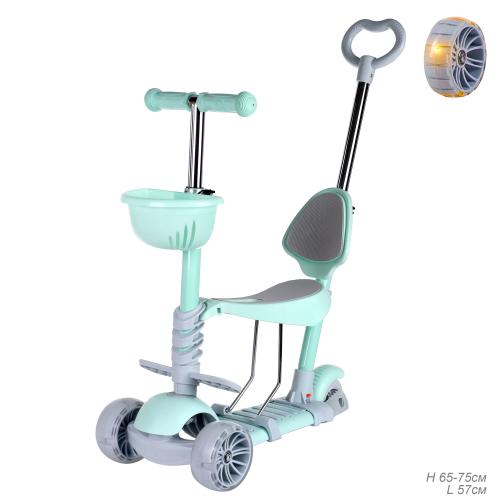 Самокат трёхколёсный с сиденьем и родительской ручкой для детей от 2-х лет Yeenot 4110D светящиеся колёса PU 120x50 цвет нежно-зеленый /уп 6/