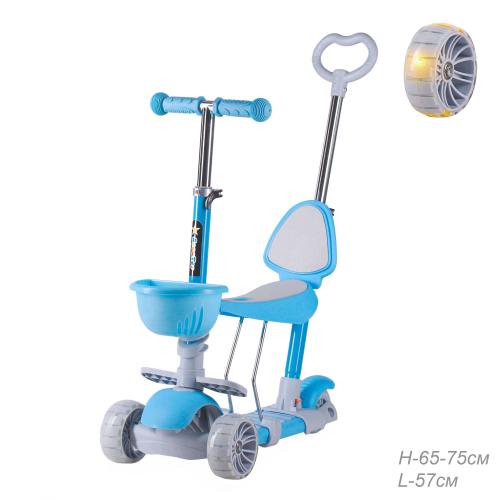 Самокат трёхколёсный с сиденьем и родительской ручкой для детей от 2-х лет Yeenot 4110D светящиеся колёса PU 120x50 цвет нежно-голубой /уп 6/