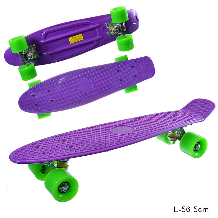 Сама доска изготовлена из полипропилена в классическом размере 22" дюйма - 56 x 14,5см. Стойкий и яркий цвет деки. Манёвренность пенниборда достигнута за счёт надёжной подвески из алюминия и колёсам из полиуретана.
