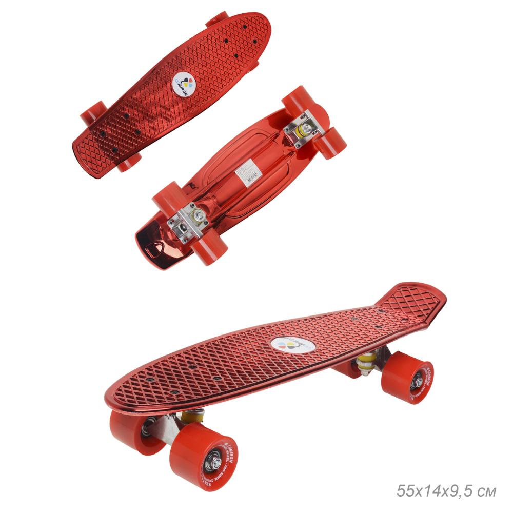 Подойдет как самым юным начинающим райдерам, так и уже опытным скейтерам. Нескользящая ребристая поверхность скейта. Сама доска изготовлена из полипропилена в классическом размере 22" дюйма - 56 x 14,5см.
