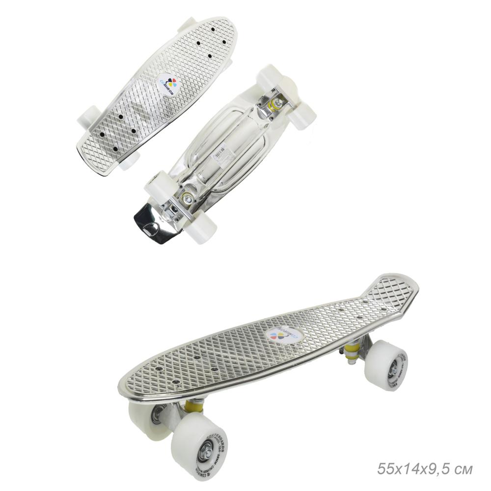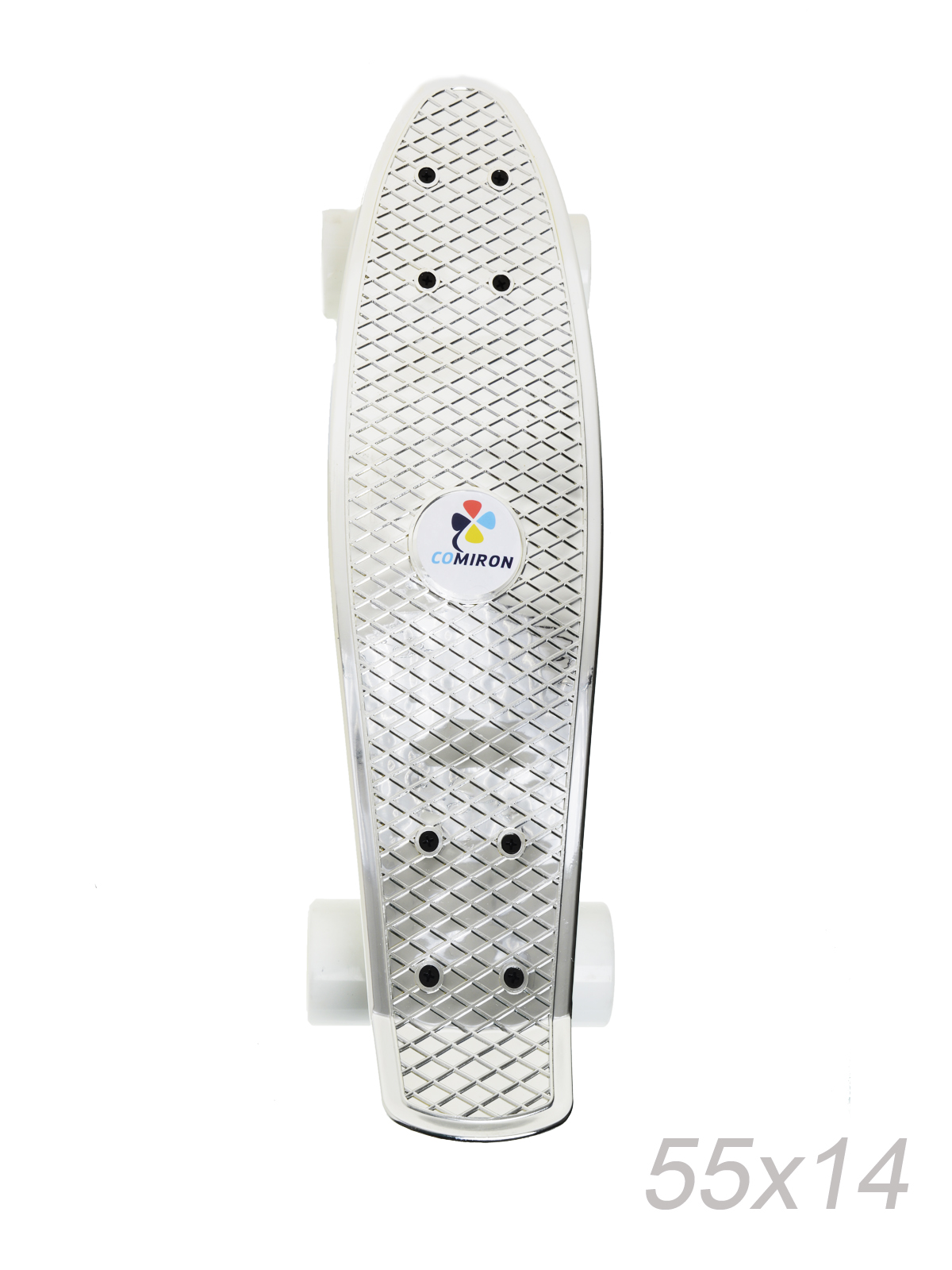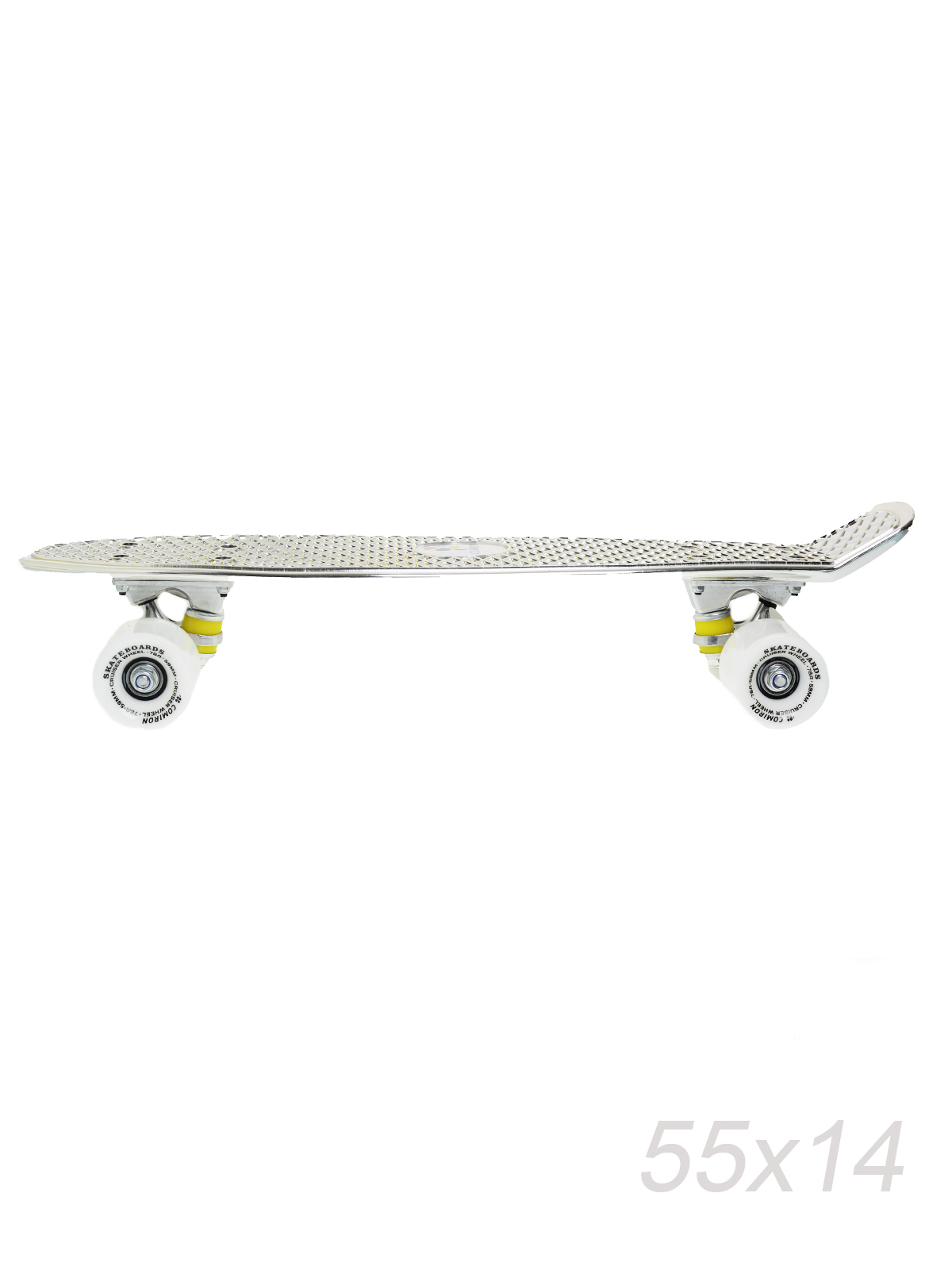 Классический лонгборд. Ярко выделяется среди аналогов благодаря металлическому отблеску доски. Подойдет как самым юным начинающим райдерам, так и уже опытным скейтерам.