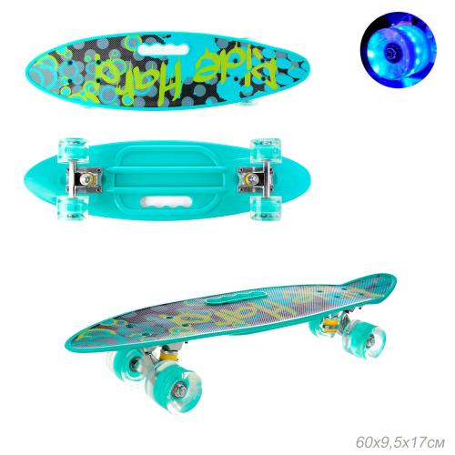 Стильный дизайн подчеркивает индивидуальность райдера. Отличительной чертой этого скейта являются светящиеся при езде колеса. Подойдет как для начинающих райдеров, так и уже опытным скейтерам. Нескользящая опорная поверхность с яркими граффити принтами.