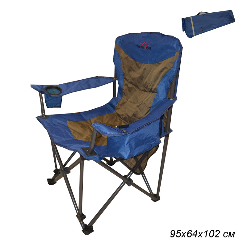 Кресло складное. Максимальная нагрузка 100 кг. Вес кресла 5,35 кг. В сложенном виде 100 см. Кресло упаковано в дорожный чехол.