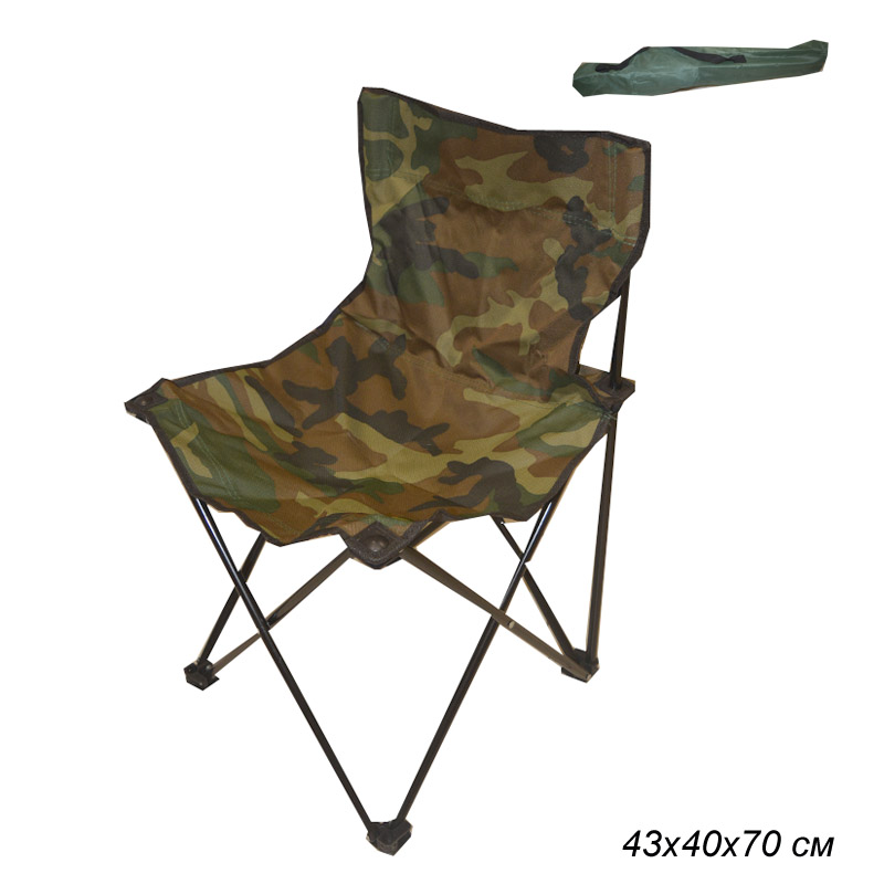Кресло складное. Максимальная нагрузка 70 кг. Вес кресла 1,15 кг. В сложенном виде 69 см. Кресло упаковано в дорожный чехол.