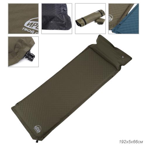 Коврик Самонадувающийся "ИРЕМЕЛЬ" 192х66х5/ Peach Skin Green/ с подушкой АКЦИЯ