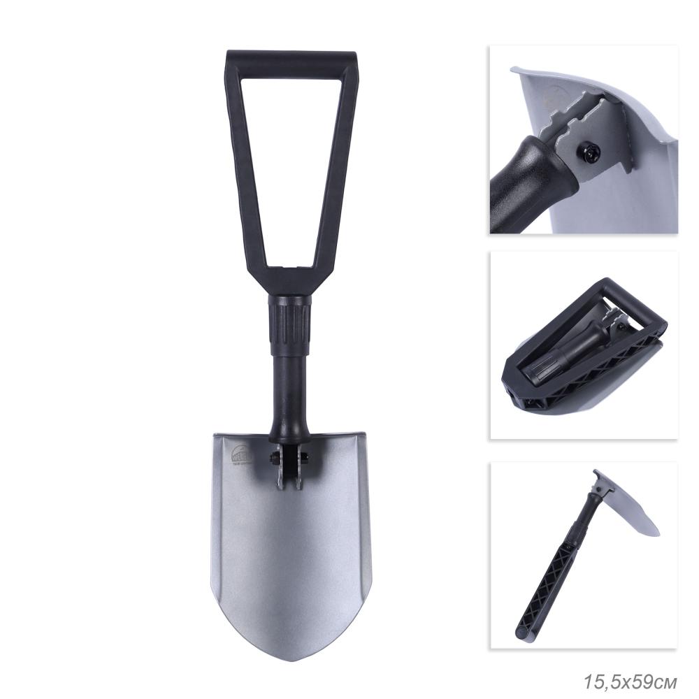 Лопата складная саперная ИРЕМЕЛЬ СПУТНИК-01 тол.1.5мм, дл.59см, лезвие 22x15.5см,термообр. углерод. сталь, 42-46°HRC, нейлон. ручка, чехол/736825/уп12
