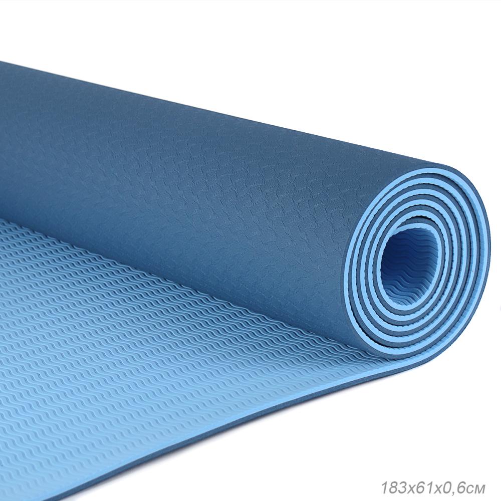 Коврик для йоги и фитнеса спортивный гимнастический двухслойный TPE 6мм. 183х61х0,6 цвет: голубой / YM2-TPE-6B / уп 12/