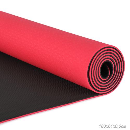 Коврик для йоги и фитнеса спортивный гимнастический двухслойный TPE 6мм. 183х61х0,6 цвет: красный / YM2-TPE-6R / уп 12/