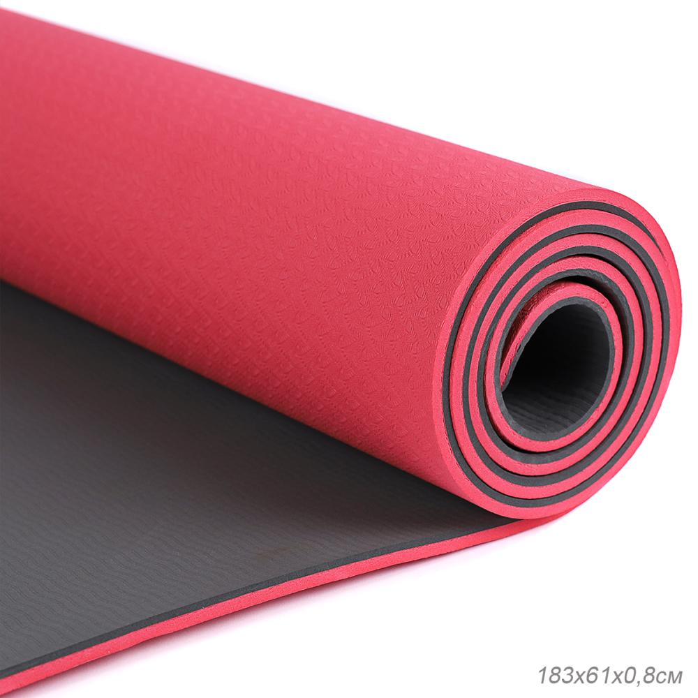 Коврик для йоги и фитнеса спортивный гимнастический двухслойный TPE 8мм. 183х61х0,8 цвет: красный / YM2-TPE-8R /уп 12/